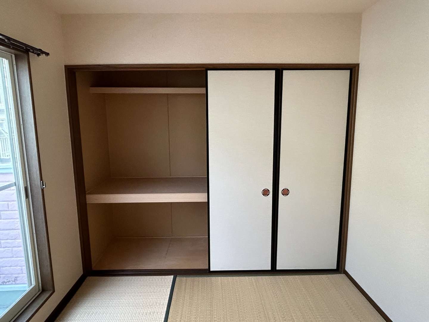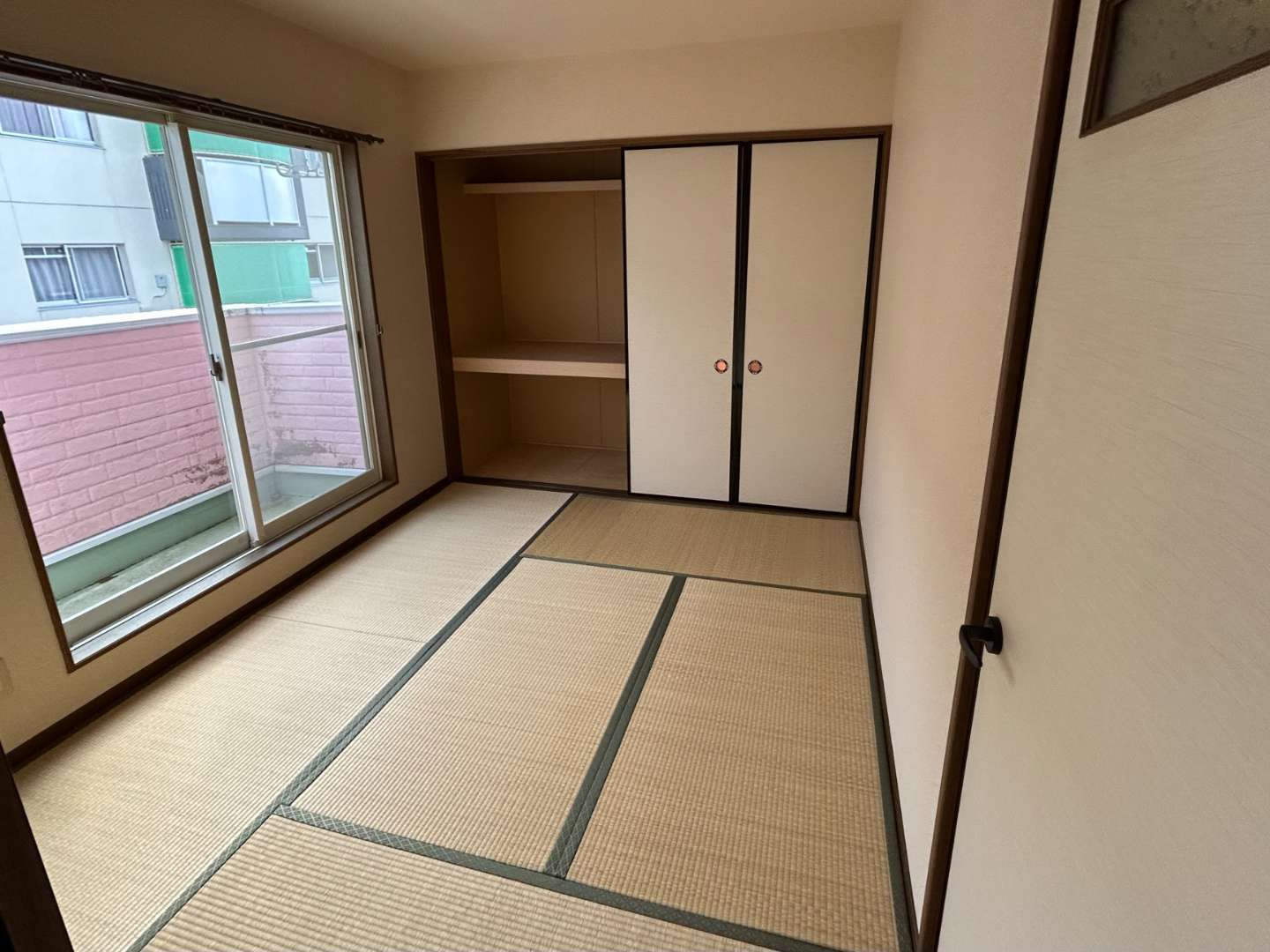 畳の擦り切れや襖の汚れに加え、押入れ内部のベニヤ板の古さも目立ちます。