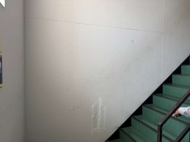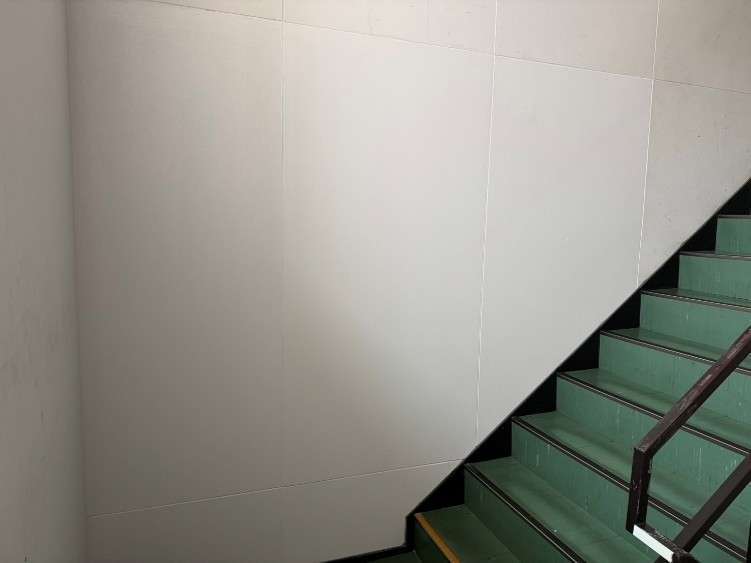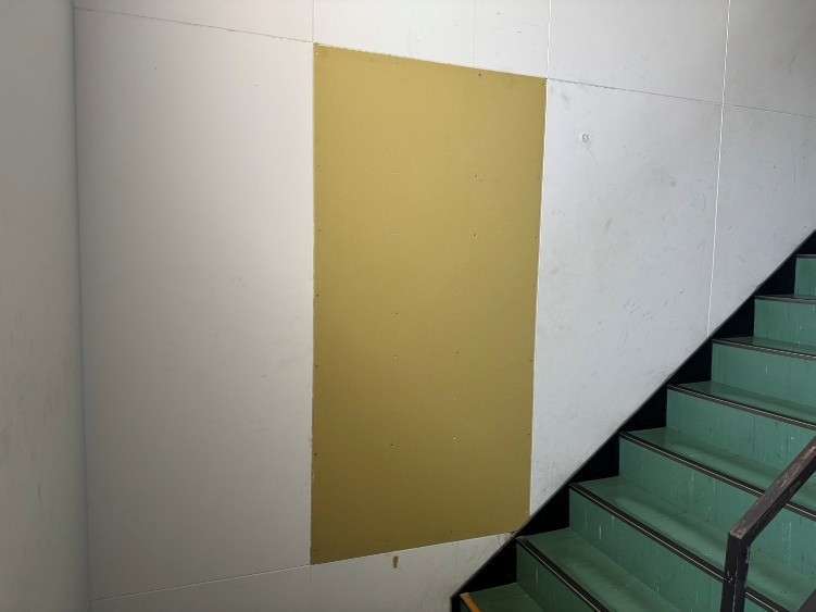 壁紙が剥がれてボードが露出していた箇所を、丁寧に補修しました。下地をしっかりと整えた上で、新しい壁紙を全面に張り替え、見違えるようにきれいになりました。これにより、工場内の美観と衛生環境が向上しました。
