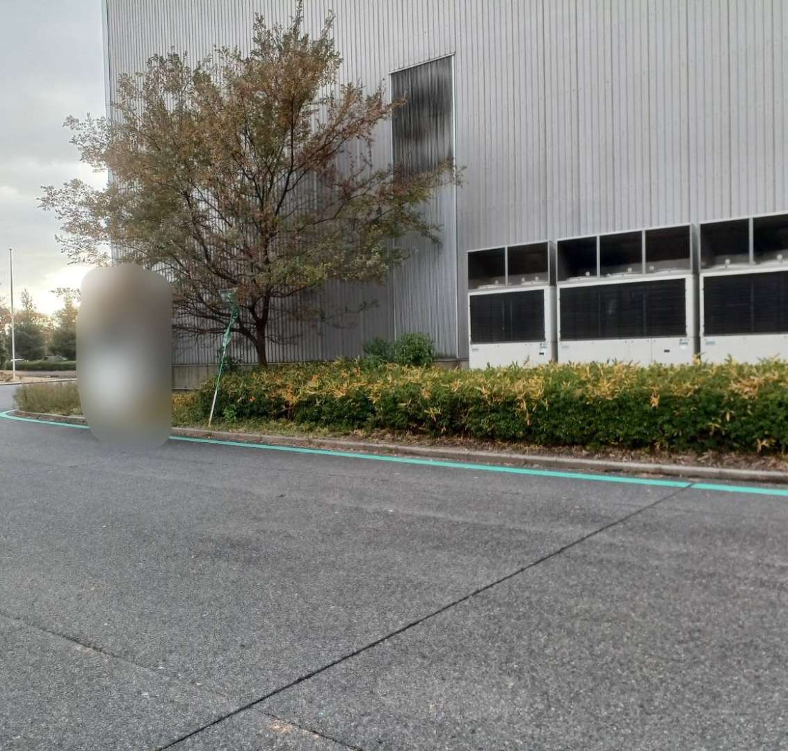 もともとは工場の外壁沿いに植栽(木や低木)がある緑地スペースでした。