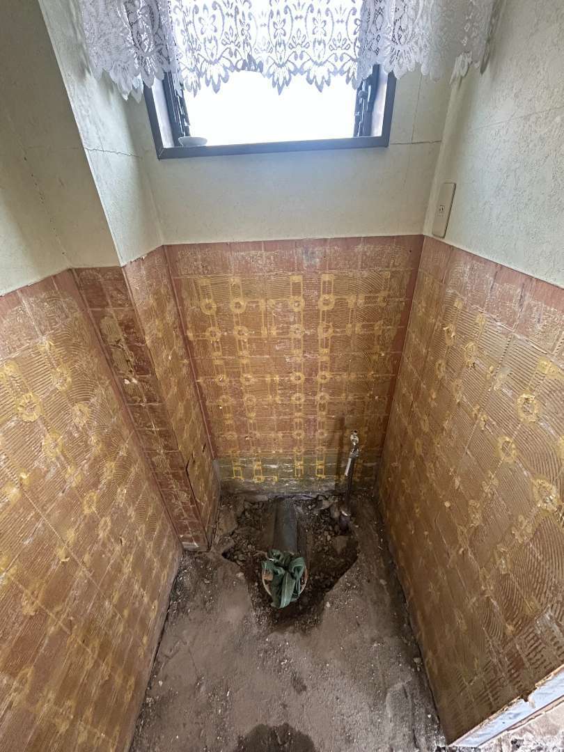 解体工事: 既存の便器、床・壁のタイルの撤去