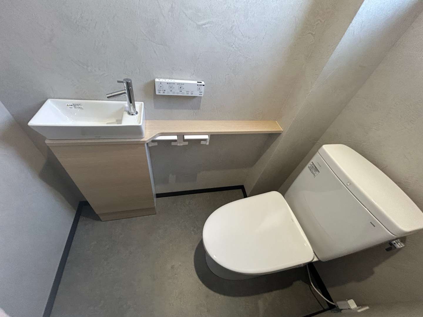 設備工事: TOTO製タンクレストイレ設置、独立手洗いカウンター新設
